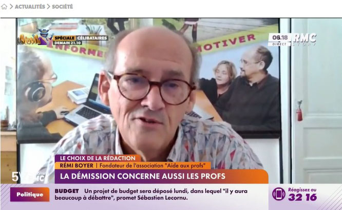 Bérengère BOCQUILLON, Cheffe du Service Société sur RMC, a interviewé Rémi BOYER Président-Fondateur de AIDE AUX PROFS sur la problématique des nécessités de service qui sont un moyen pour les académies d'empêcher les professeurs de la quitter lorsqu'ils le souhaitent pour aller travailler ailleurs, dans un autre ministère, une collectivité locale ou une entreprise privée, ou pour créer la leur.